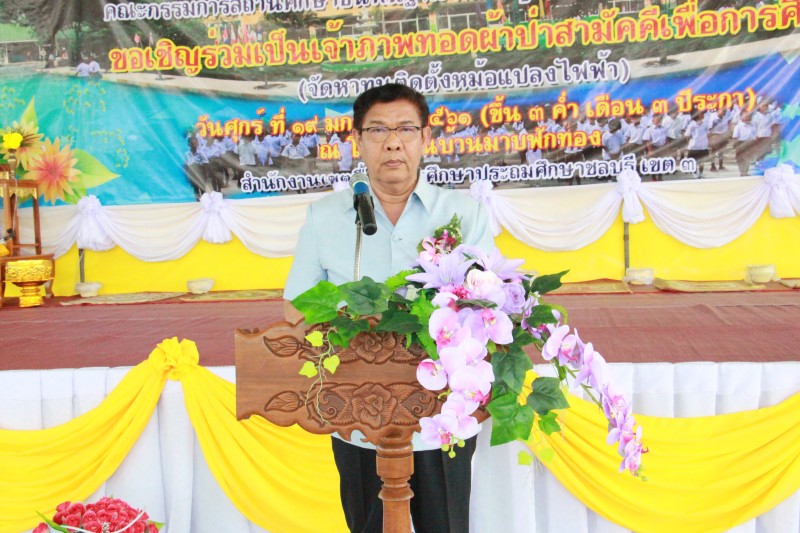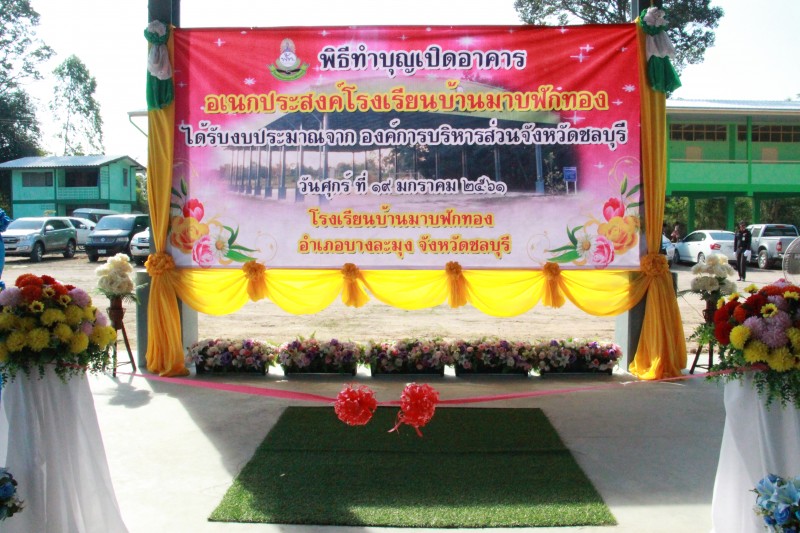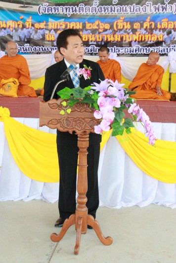 นายวิชัย พวงภาคีสิริ ผอ.สพป.ชลบุรี เขต ๓ ร่วมพิธีเปิดอาคารอเนกประสงค์ และร่วมทอดผ้าป่าสามัคคีเพื่อการศึกษา เพื่อจัดหาทุนติดตั้งหม้อแปลงไฟฟ้า โรงเรียนบ้านมาบฟักทอง วันศุกร์ที่ ๑๙ มกราคม ๒๕๖๑ โดยมีนายเรวัตร ผลลูกอินทร์ รองนายกองค์การบริหารส่วนจังหวัด เป็นประธานในพิธี (พิมลดา จินตนา ภาพ/ข่าว)