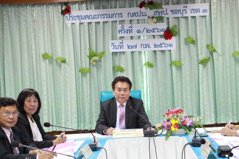 นายวิชัย พวงภาคีศิริ ผอ.สพป.ชลบุรี เขต ๓ เป็นประธานการประชุมคณะกรรมการ ก.ต.ป.น. ครั้งที่ ๑/๒๕๖๑ วันที่ ๒๗ กุมภาพันธ์ ๒๕๖๑ ณ ห้องประชุม ๒ สพป.ชลบุรี เขต ๓ ทั้งนี้ คณะกรรมการได้ร่วมทำแบบสอบถามออนไลน์ก่อนการประชุมด้วย (พิมลดา จินตนา : ภาพ/ข่าว)