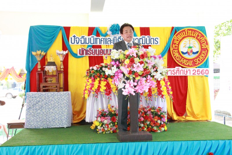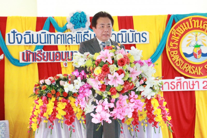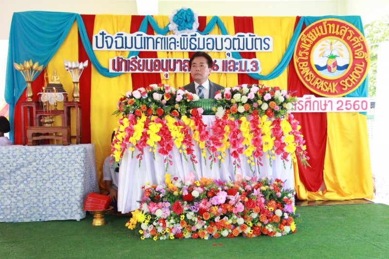 นายวิชัย พวงภาคีศิริ ผู้อำนวยการ สพป.ชลบุรี เขต ๓ เป็นประธานในพิธีปัจฉิมนิเทสและพิธีมอบวุฒิบัตรแก่นักเรียนอนุบาล, ประถมศึกษาปีที่ ๖ และมัธยมศึกษาปีที่ ๓ โรงเรียนบ้านสุรศักดิ์ ที่จบการศึกษาในปีการศึกษา ๒๕๖๐ (พิมลดา จินตนา : ภาพ/ข่าว)