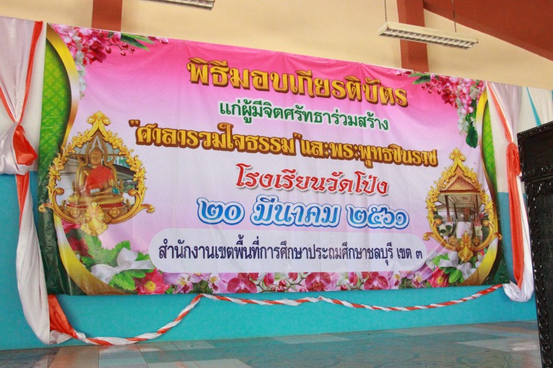 นายวิชัย พวงภาคีศิริ ผู้อำนวยการ สพป.ชลบุรี เขต ๓ ร่วมพิธีเปิดป้ายอาคารเรียน องค์การบริหารส่วนจังหวัดชลบุรี และพิธีเบิกเบตรพระประจำโรงเรียน โดยมี นายวิทยา คุณปลื้ม นายกองค์การบริหารส่วนจังหวัดชลบุรี เป็นประธานในพิธี วันที่ ๒๐ มีนาคม ๒๕๖๑  ณ โรงเรียนวัดโป่ง  (พิมลดา จินตนา : ภาพ/ข่าว)