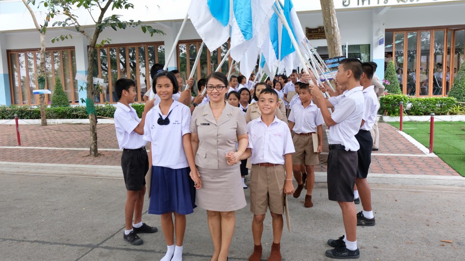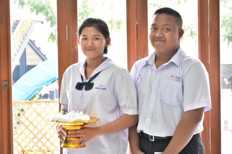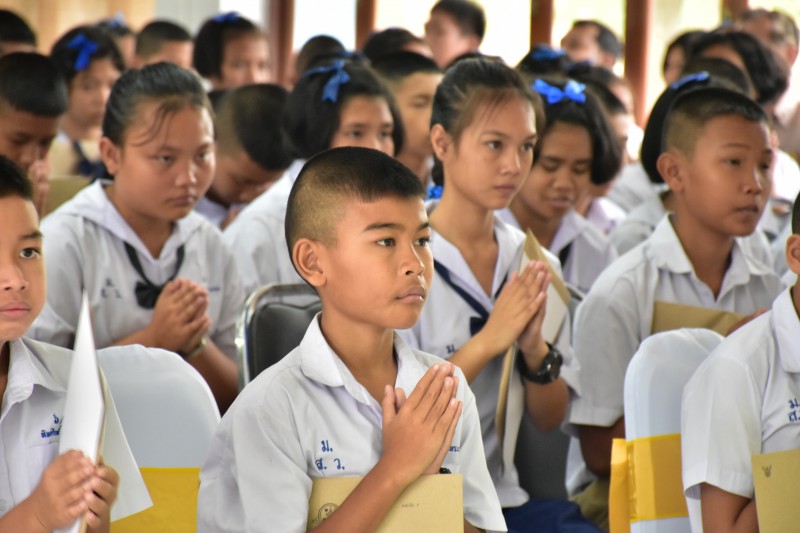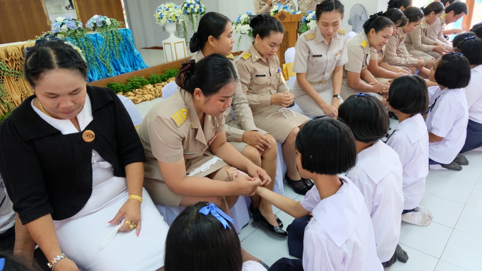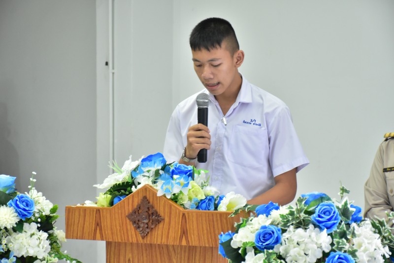 ในพิธีและให้โอวาทกับนักเรียน พร้อมทั้งมอบเกียรติบัตรให้กับนักเรียนเรียนดีและนักเรียนที่ปฎิบัติกิจกรรมเด่น ของโรงเรียน และในเวลาต่อมา นางชนิตา ยินดีสุข ผอรร ได้มอบเกียรติบัตร ให้กับนักเรียนที่สำเร็จการศึกษา ในปีการศึกษา 2560 และได้เชิญศิษย์เก่าดีเด่นพูดคุยกับนักเรียนเพื่อสร้างแรงบันดาลใจให้กับนักเรียน และมีกิจกรรมผูกข้อมือและลอดซุ้มธง โดยมีผู้อำนวยการ  ได้เดินนำเพื่อส่งลูกสุทธาวาส ให้สู่ความสำเร็จ