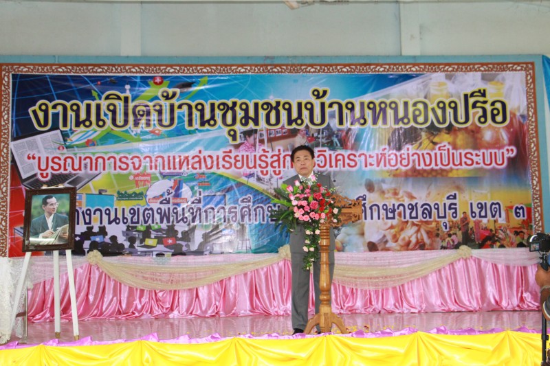 วันที่ 18 กุมภาพันธ์ 2559 เวลา 09.00 น. นายวิชัย พวงภาคีศิริ ผู้อำนวยการสำนักงานเขตพื้นที่การศึกษาประถมศึกษาชลบุรี เขต 3 เป็นประธานในพิธีเปิดงานเปิดบ้านชุมชนบ้านหนองปรือ “บูรณาการจากแหล่งเรียนรู้ สู่การวิเคราะห์อย่างเป็นระบบ” ณ อาคารเอนกประสงค์โรงเรียนชุมชนบ้านหนองปรือ อำเภอบางละมุง จังหวัดชลบุรี  สำหรับการจัดงานครั้งนี้มีวัตถุประสงค์เพื่อเปิดโรงเรียนให้ชุมชนเข้ามาเยี่ยมชมและตัดสินใจนำบุตรหลานมาสมัครเรียนในปีการศึกษา 2559  ครูและนักเรียน นำเสนอผลการจัดการเรียนการสอนในปีการศึกษา 2558 ต่อชุมชน อีกทั้งนักเรียนชั้นประถมศึกษาปีที่ 6 ได้นำเสนอผลงานประเมินองค์ความรู้สาระสุขศึกษา พลศึกษา ศิลปะ การงานอาชีพและเทคโนโลยี  (ปิ่นเพชร แช่มช้อย : ภาพ/ข่าว)