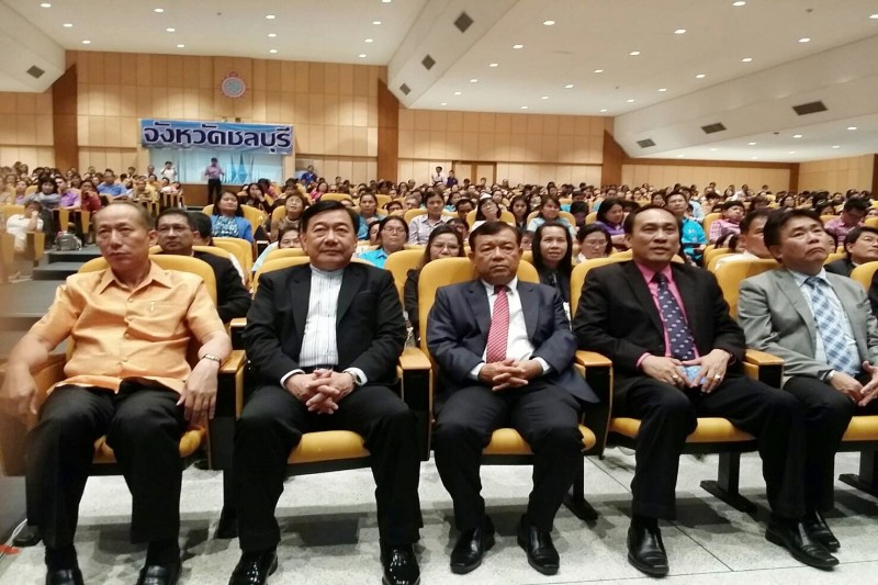 วันที่ 13 พฤษภาคม 2559 เวลา 14.00 น. ที่ห้องประชุมยูงทอง อาคารพระยาสัจจาภิรมย์ โรงเรียนชลราษฎร์อำรุง จังหวัดชลบุรี นายวิชัย พวงภาคีศิริ ผู้อำนวยการสำนักงานเขตพื้นที่การศึกษาประถมศึกษาชลบุรี เขต 3 พร้อมด้วยผู้บริหารสถานศึกษา ข้าราชการครูและบุคลากรทางการศึกษา สังกัดสำนักงานเขตพื้นที่การศึกษาประถมศึกษาชลบุรี เขต 3 เข้าร่วมรับฟังการถ่ายทอดสดการประชุมทางไกล “ นายกรัฐมนตรีพบเพื่อนครู” ผ่านระบบ Video Conference เพื่อรับทราบแนวทางการบริหารจัดการศึกษาขั้นพื้นฐานตามนโยบายของรัฐบาลและกระทรวงศึกษาธิการ การสร้างความเข้าใจในการดำเนินการตามนโยบายปฏิรูปการศึกษาของกระทรวงศึกษาธิการในภูมิภาค (ภาพ : เครือข่ายนักประชาสัมพันธ์/ปิ่นเพชร แช่มช้อย : ข่าว)