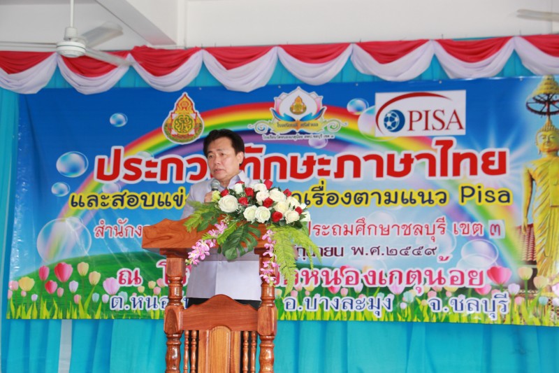 วันที่ 4 มิถุนายน 2559 เวลา 09.00 น. ที่โรงเรียนวัดหนองเกตุน้อย อำเภอบางละมุง จังหวัดชลบุรี : นายวิชัย พวงภาคีศิริ ผอ.สพป.ชลบุรี เขต 3 เป็นประธานเปิดการประกวดทักษะภาษาไทยและสอบแข่งขันอ่านเอาเรื่องตามแนวทาง PISA โครงการพัฒนาคุณภาพการเรียนการสอนภาษาไทย โดยมีวัตถุประสงค์เพื่อส่งเสริมให้นักเรียนแสดงทักษะและความสามารถพิเศษด้านสร้างสรรค์วรรณศิลป์ เป็นการประยุกต์ใช้ความรู้ภาษาไทยจากห้องเรียนสู่การใช้ภาษาสื่อสารในชีวิตจริง การประกวดประกอบด้วย การประกวดทักษะเขียนเรียงความ การแต่งกลอนสี่ การแต่งกลอนแปด การคัดลายมือ รูปแบบกระทรวงศึกษาธิการ การสอบอ่านเอาเรื่อง ตามแนวทาง PISA และการสอบแข่งขันเขียนตามคำบอก สำหรับนักเรียนที่ชนะเลิศ จะได้เข้าร่วมประกวดและสอบแข่งขันระดับชาติ ในเดือนกรกรฎาคมนี้ (ปิ่นเพชร แช่มช้อย : ภาพ/ข่าว)