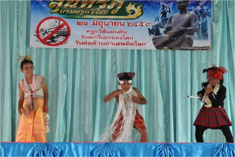 นางเกศรา  เผือกนาง  ผู้อำนวยการโรงเรียนบ้านเขาบายศรี  เป็นประธานเปิดกิจกรรมวันสุนทรภู่  เพื่อสดุดีครูกวีศรีสยามผู้ฝากผลงานกาพย์กลอนสอนเด็กไทย  วันที่ 24 มิถุนายน  2559 (ภาพ/ข่าวประชาสัมพันธ์โรงเรียน)