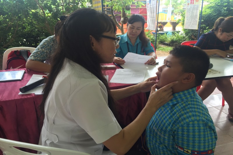 คณะคุณหมอจากโรงพยาบาลบางละมุง ได้มาทำกิจกรรม ฟันสวย ยิ้มใส ใส่ใจดูแล ให้กับเด็กๆโรงเรียนบ้านสันติคาม