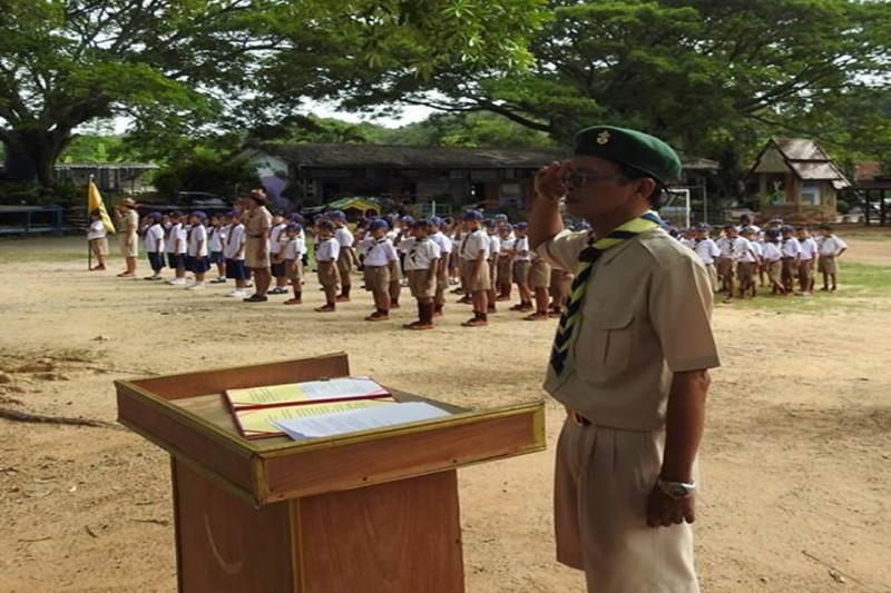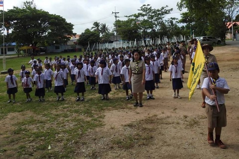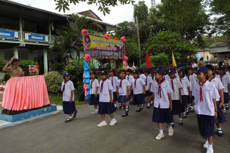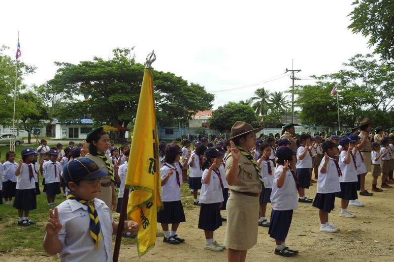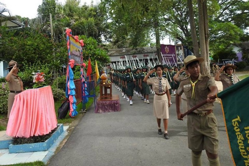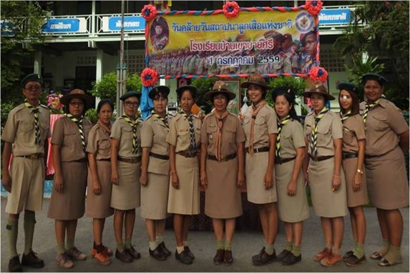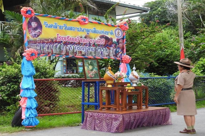 นางเกศรา  เผือกนาง  ผู้อำนวยการโรงเรียนบ้านเขาบายศรีเป็นประธานกิจกรรมวันสถาปนาลูกเสือแห่งชาติ  การกล่าวคำปฏิญาณและเดินสวนสนามของลูกเสือสำรองและลูกเสือสามัญโรงเรียนบ้านเขาบายศรี  วันที่ 1 กรกฎาคม 2559  ปีการศึกษา 2559  (ภาพ/ข่าวประชาสัมพันธ์โรงเรียน)