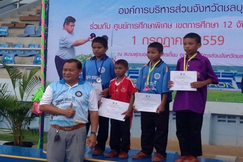 นักเรียนการศึกษาพิเศษเรียนร่วม/รวมโรงเรียนบ้านเขาบายศรี ได้เข้าร่วมแข่งขันกีฬาโครงการ อบจ.ชลบุรี พัมนากีฬาเด็กพิเศษ  เพื่อให้นักเรียนพิเศษได้ทำกิจกรรมร่วมกัน ได้รับพัฒนาสุขภาพและคุณภาพชีวิตของเด็กพิเศษอย่างเต็มความสามารถ วันที่ 1 กรกฎาคม 2559  (ภาพ/ข่าวประชาสัมพันธ์โรงเรียน)