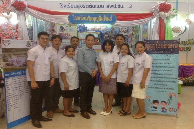 เมื่อวันที่ 6 กรกฎาคม พ.ศ. 2559 สำนักงานเขตพื้นที่การศึกษาประถมศึกษาชลบุรี เขต 3 ได้มอบหมายให้โรงเรียนวัดบุญสัมพันธ์(โรงเรียนสุจริตต้นแบบ) เป็นตัวแทนในการจัดบูธมหกรรมเยาวชน ปลูกพลังเปลี่ยนไทยต่อต้านการทุจริต ครั้งที่ 4 โรงเรียนวัดบุญสัมพันธ์นำโดย นางเยาวดี จุฑาพรรณาชาติ ผู้อำนวยการ คณะครูและนักเรียนบางส่วน ร่วมมหกรรมในครั้งนี้ที่ทางสภาเด็กและเยาวชนจังหวัดชลบุรี ร่วมกับองค์การบริหารส่วนจังหวัดชลบุรีและสำนักงานพัฒนาสังคมและความมั่นคงของมนุษย์จังหวัดชลบุรี ระหว่างวันที่ 6 - 9 กรกฎาคม พ.ศ.2559 ณ อำเภอศรีราชา จังหวัดชลบุรี