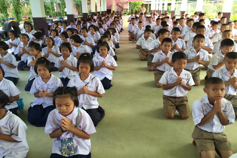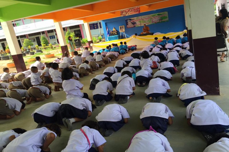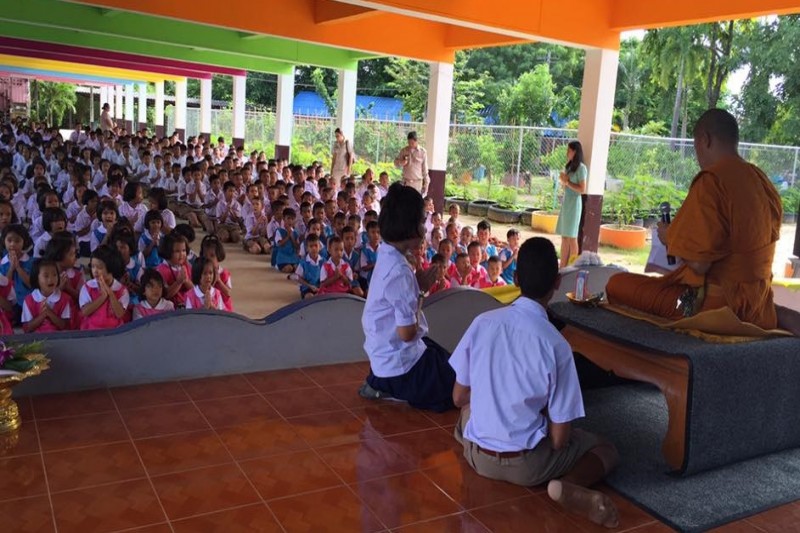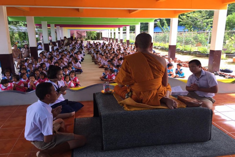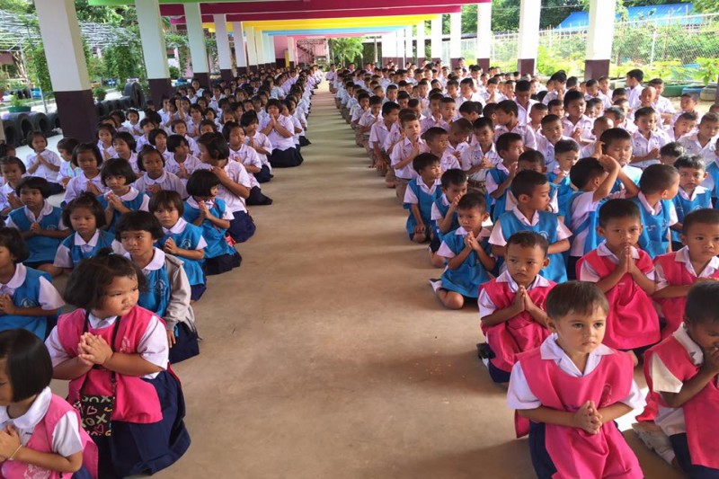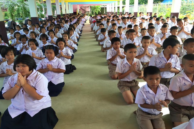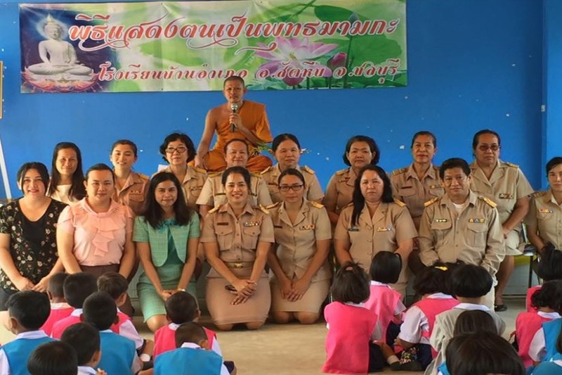 นางชุติกาญจน์ ทองเพิ่ม ผู้อำนวยการโรงเรียนบ้านอำเภอ สำนักงานเขตพื้นที่การศึกษาชลบุรีเขต 3 คณะครูและนักเรียน ได้จัดกิจกรรมการแสดงตนเป็นพุทธมามกะ ณ ห้องประชุม อาคาร BBL โรงเรียนบ้านอำเภอ ตำบลนาจอมเทียน อำเภอสัตหีบ จังหวัดชลบุรี (นางณิชากร จุลสวัสดิ์ ภาพ/ข่าว)