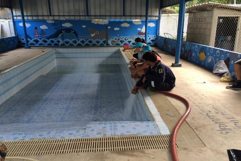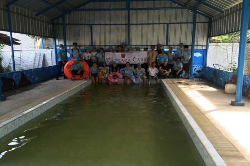 คณะผู้บริหารและพนักงานโรงแรมเซ็นทาราแกรนด์มิราจบีชรีสอร์ท พัทยา ออกช่วยเหลือสังคมในการปรับปรุงซ่อมแซมและทำความสะอาดสระว่ายน้ำนักเรียนพิเศษเรียนร่วม/รวม วันที่ 28 กรกฎาคม 2559  (ภาพ/ข่าวประชาสัมพันธ์โรงเรียน)