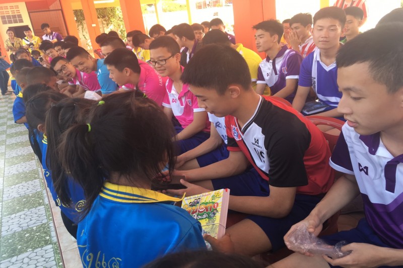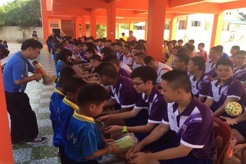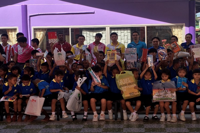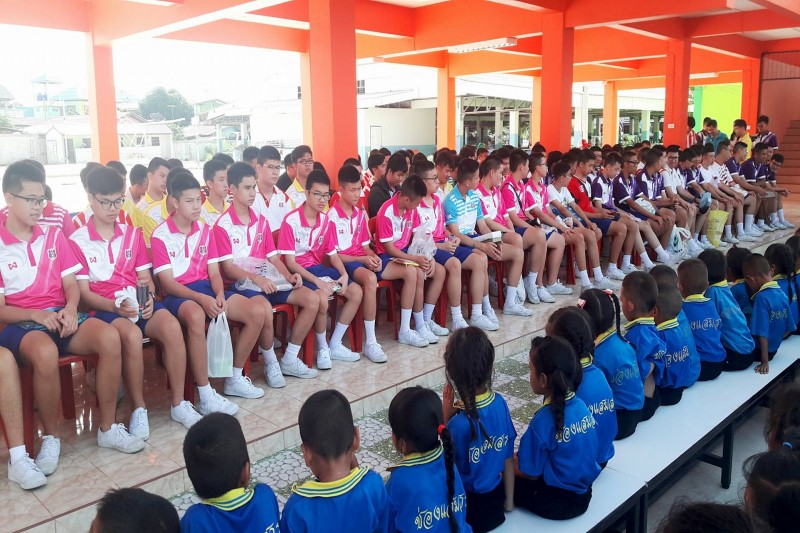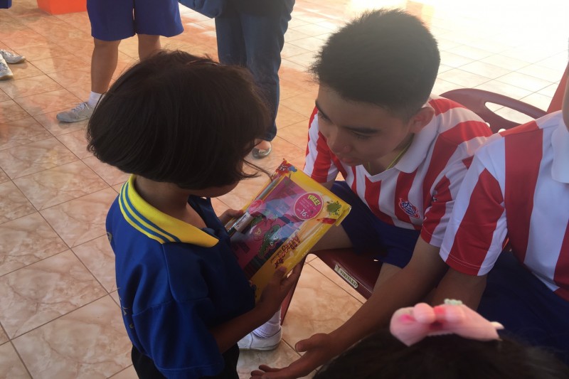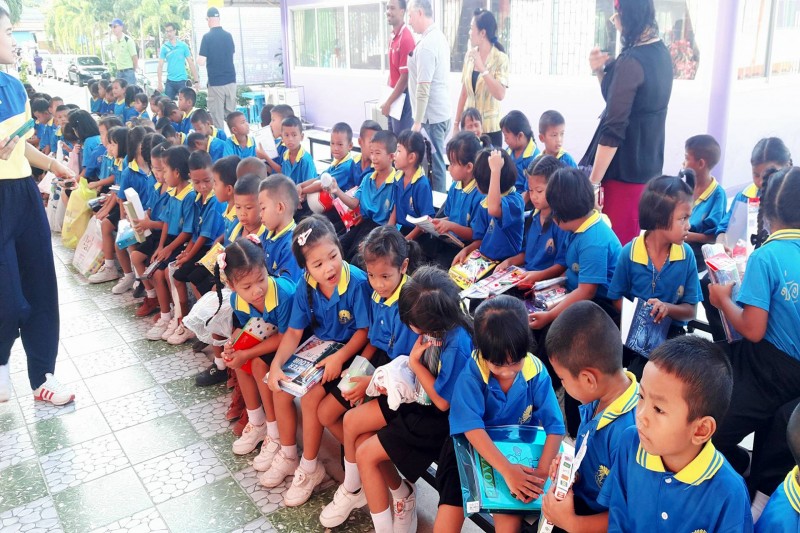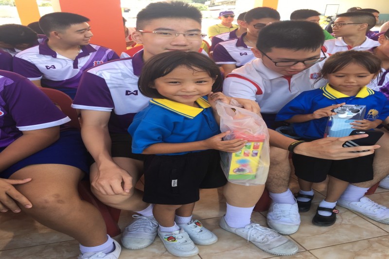 นักเรียนโรงเรียนชุมชนบ้านช่องแสมสาร ร่วมรับอุกรณ์การเรียนจากนักเรียนระดับชั้นมัธยมศึกษาปีที่ 4-6 โปรแกรมภาษาอังกฤษ โรงเรียนอัสสัมชัญ เขตบางรัก กรุงเทพมหานคร ในกิจกรรมค่ายพัฒนาคุณภาพชีวิตและจิตอาสา ซึ่งมีวัตถุประสงค์เพื่อพัฒนาให้ผู้เรียนมีประสบการณ์ตรงจากการทำงาน ทำกิจกรรม และบำเพ็ญประโยชน์ต่อสังคม พัฒนาให้ผู้เรียนรู้จักเอื้อเฟื้อเผือแผ่ มีน้ำใจรู้จักช่วยเหลือผู้อื่น