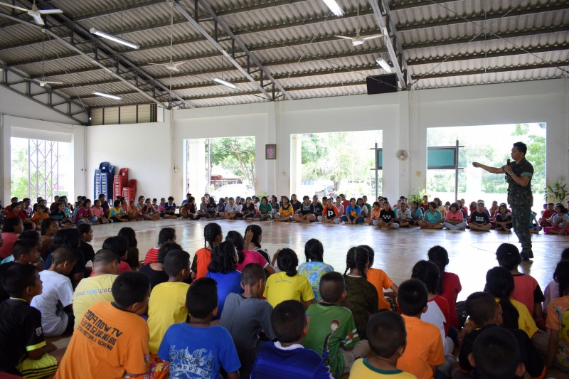 นักเรียนระดับชั้น ป.๔-๖ โรงเรียนบ้านสัตหีบ (สพป.ชบ.๓) เข้าร่วมกิจกรรมลูกเสือ-เนตรนารี เพื่อให้นักเรียนได้ฝึกระเบียบวินัยและความอดทน ณ กองร้อยปฏิบัติการจิตวิทยา หน่วยบัญชาการนาวิกโยธิน ระหว่างวันที่ ๑๕-๑๖ กันยายน ๒๕๕๙