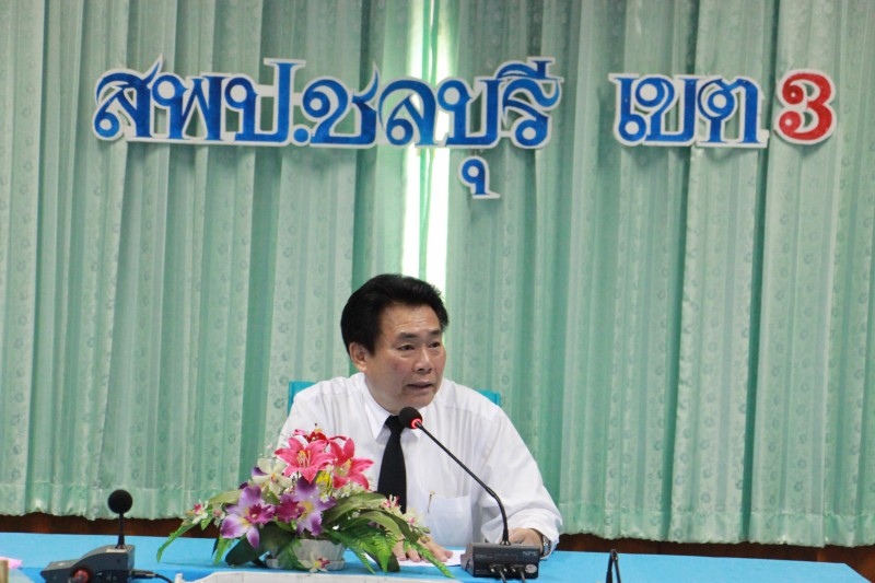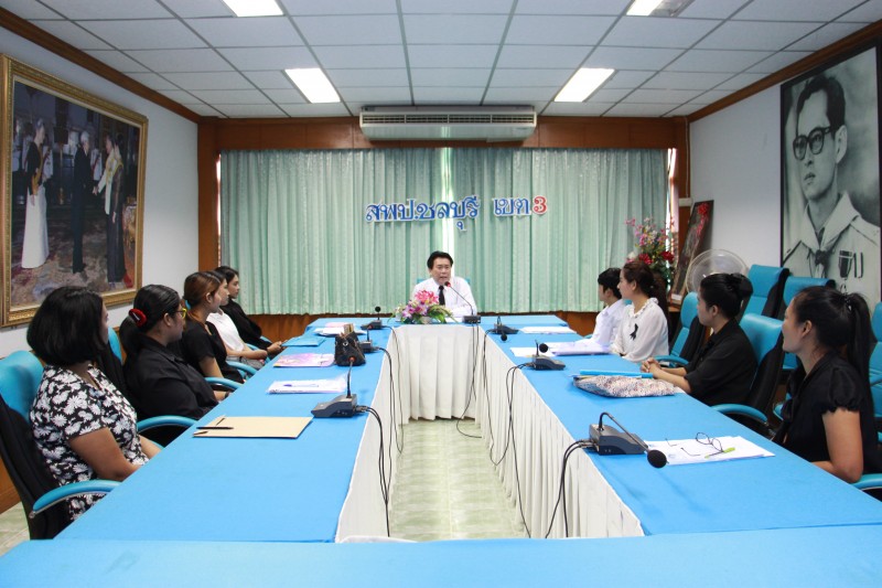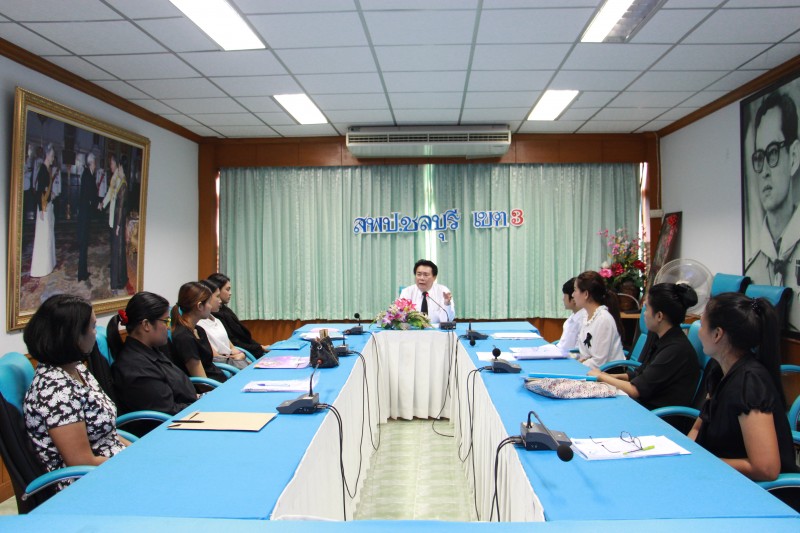 วันที่ 25 ตุลาคม 2559 เวลา 09.00 น. นายวิชัย พวงภาคีศิริ ผอ.สพป.ชลบุรี เขต 3 มอบนโยบาย แนวทางการปฏิบัติหน้าที่ครู และสิทธิประโยชน์ แก่ข้าราชการครูบรรจุใหม่ ซึ่ง สพป.ชลบุรี เขต 3 บรรจุและแต่งตั้งจากผู้ผ่านการคัดเลือกบุคคลเพื่อบรรจุและแต่งตั้งเข้ารับราชการเป็นข้าราชการครูและบุคลากรทางการศึกษา ตำแหน่งครูผู้ช่วย ของสำนักงานศึกษาธิการจังหวัดชลบุรี โครงการนักเรียนทุนโครงการผลิตครูเพื่อพัฒนาท้องถิ่น ปี 2559 จำนวน 9 ราย ณ ห้องประชุม 1 ชั้น 3 สพป.ชลบุรี เขต 3 (ปิ่นเพชร แช่มช้อย : ภาพ/ข่าว)