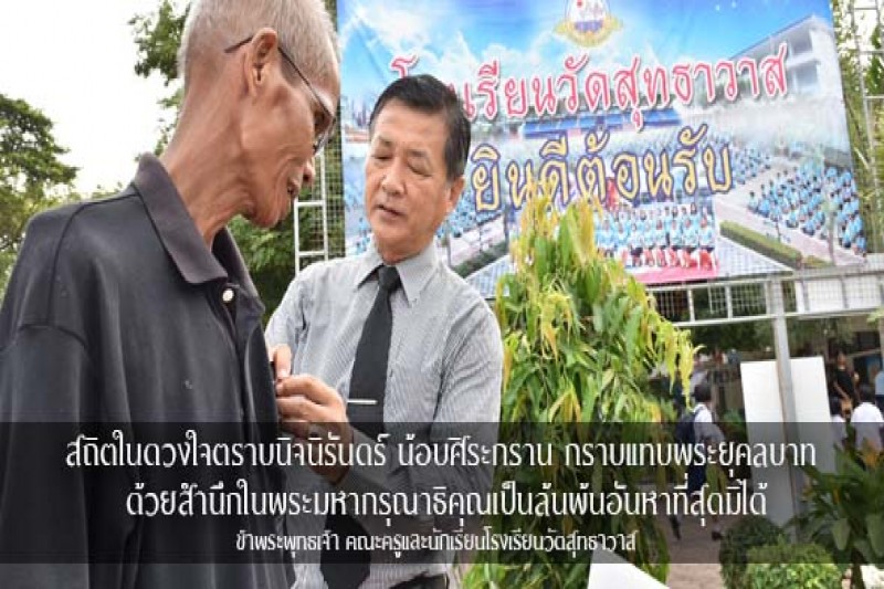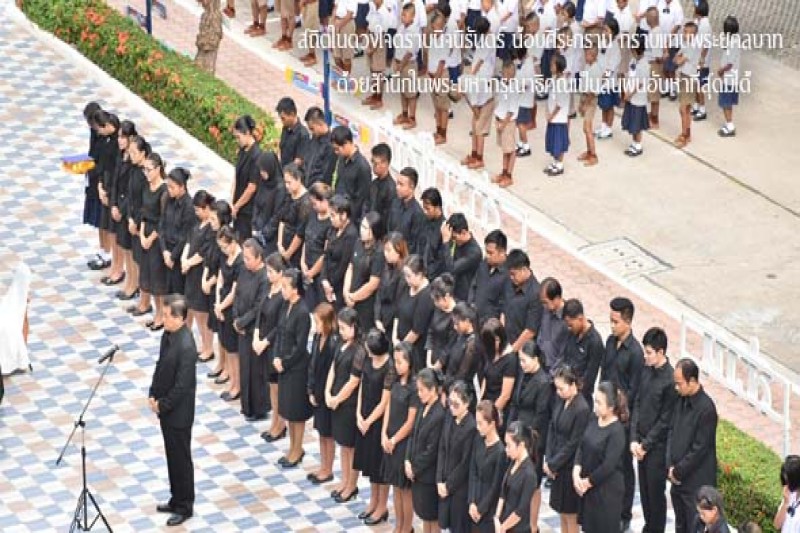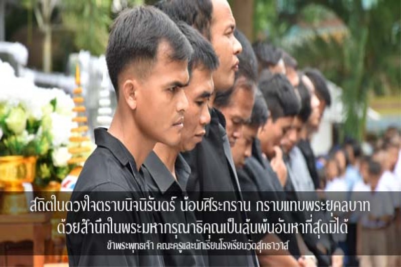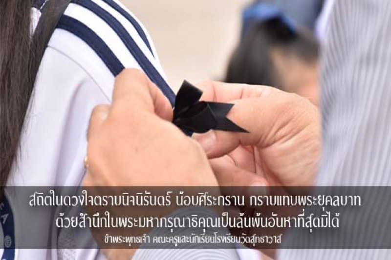 โรงเรียนวัดสุทธาวาสจัดพิธีแสดงความอาลัย พระบาทสมเด็จพระปรมินทรมหาภูมิพลอดุลยเดช พร้อมกับแจกริบบิ้นดำให้กับผู้ปกครองนักเรียน