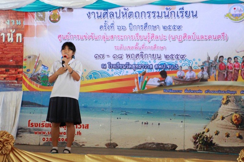 วันที่ 18 พฤศจิกายน 2559 เวลา 10.30 น. นายวิชัย พวงภาคีศิริ ผู้อำนวยการสำนักงานเขตพื้นที่การศึกษาประถมศึกษาชลบุรี เขต 3 เยี่ยมชมพร้อมให้กำลังใจครูและนักเรียน ที่เข้าร่วมการประกวดและแข่งขันศิลปหัตถกรรมนักเรียน ปีการศึกษา 2559 ระดับเขตพื้นที่การศึกษา กิจกรรมศิลปะ-ดนตรี ณ โรงเรียนวัดสุทธาวาส (ปิ่นเพชร แช่มช้อย : ภาพ/ข่าว)