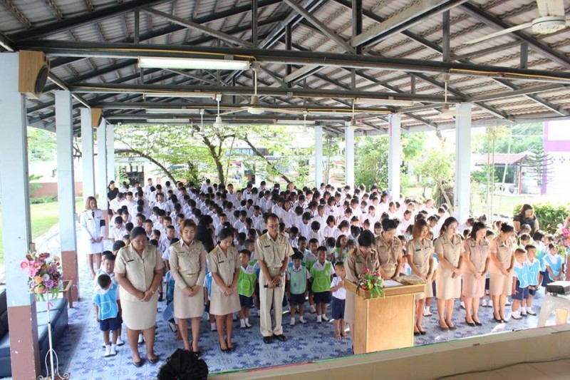ผู้อำนวยการโรงเรียน คณะครู และนักเรียน โรงเรียนบ้านเขาบายศรี ร่วมแสดงความอาลัย รวมพลังแห่งความภักดี ถวายในหลวง ร.9 วันที่ 22 พฤศจิกายน 2559 เวลา 07:30 - 15:30 น. (ภาพข่าว/ประชาสัมพันธ์โรงเรียน)