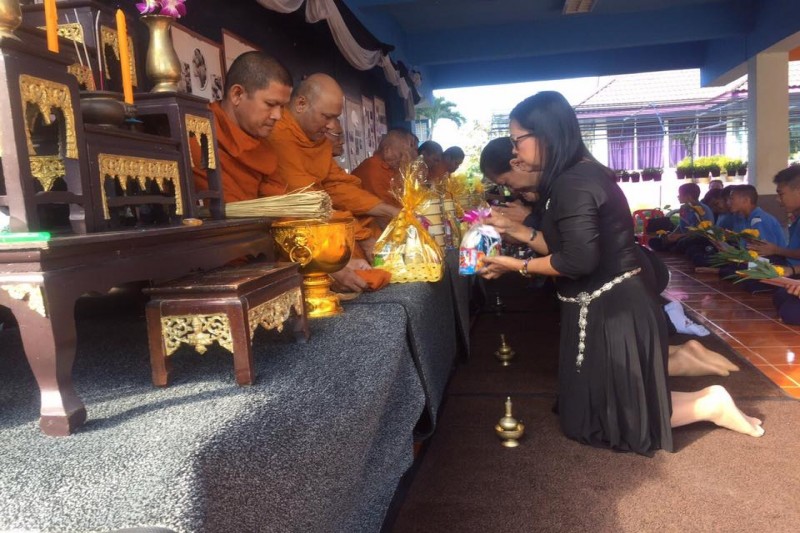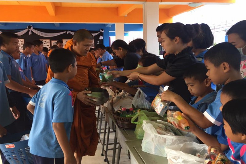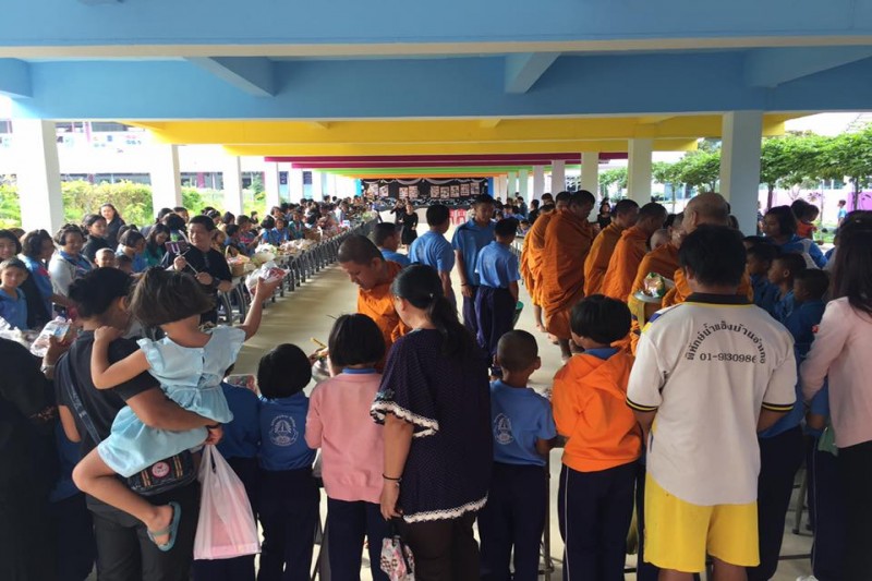 30 ธันวาคม2559 นางชุติกาญจน์ ทองเพิ่ม ผู้อำนวยการโรงเรียนบ้านอำเภอ สำนักงานเขตพื้นที่การศึกษาประถมศึกษาชลบุรี เขต 3 คณะครู ผู้ปกครอง และนักเรียนโรงเรียนบ้านอำเภอ ตำบลนาจอมเทียน อำเภอสัตหีบ จังหวัดชลบุรี ร่วมทำบุญตักบาตรข้าวสารอาหารแห้งเนื่องในวันส่งท้ายปีเก่าต้อนรับปีใหม่ ณ อาคาร BBL โรงเรียนบ้านอำเภอ (นางณิชากร จุลสวัสดิ์ ภาพ/ข่าว)