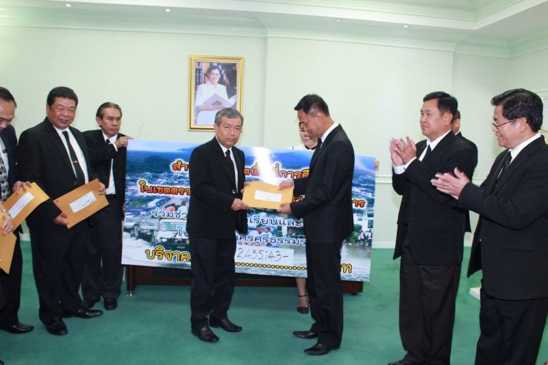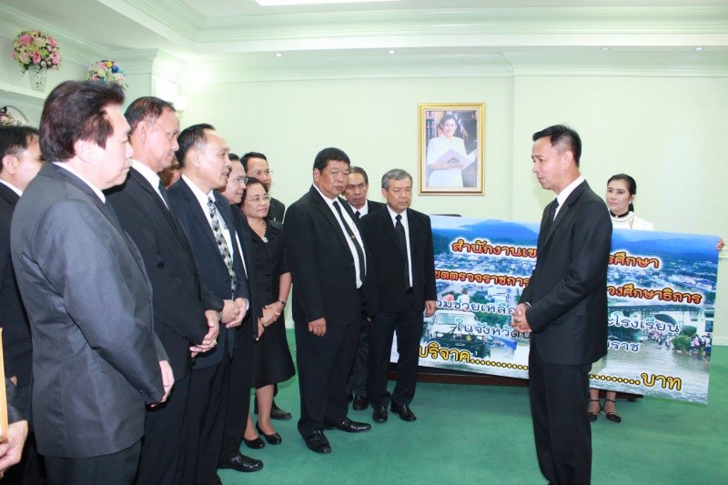 วันที่ 24 มกราคม 2560 เวลา 14.00 น. ที่ห้องสีเขียว สพฐ.1 กระทรวงศึกษาธิการ : นายวิชัย  พวงภาคีศิริ ผู้อำนวยการสำนักงานเขตพื้นที่การศึกษาประถมศึกษาชลบุรี เขต 3 มอบเงินจำนวน 400,000 บาท ร่วมกับเขตพื้นที่การศึกษา Cluster 9  ช่วยเหลือผู้ประสบอุทกภัยทางภาคใต้ (จ.นครศรีธรรมราช) เพื่อช่วยบรรเทาความเดือดร้อนแก่โรงเรียน นักเรียน และประชาชนทั่วไป  รวมจำนวนเงินทั้งสิ้น 2,455,143 บาท โดยมีนายการุณ  สกุลประดิษฐ์ เลขาธิการคณะกรรมการการศึกษาขั้นพื้นฐาน เป็นผู้รับมอบ (ภาพ : สุรชาติ/ ข่าว : ปิ่นเพชร แช่มช้อย)