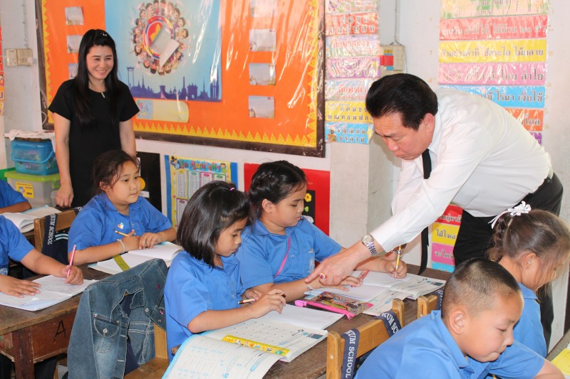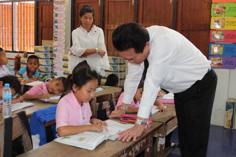 เมื่อวันที่ 14 กุมภาพันธ์ 2560 เวลา 15.00 น. นายวิชัย พวงภาคีศิริ ผู้อำนวยการสำนักงานเขตพื้นที่การศึกษาประถมศึกษาชลบุรี เขต 3 ลงพื้นที่ตรวจเยี่ยม โรงเรียนบ้านห้วยกุ่ม เพื่อติดตามเรื่องการอ่านออกเขียนได้ของนักเรียนชั้นประถมศึกษาปีที่ 1 การจัดการเรียนการสอน และสร้างขวัญกำลังใจแก่ผู้บริหารโรงเรียน ครู และนักเรียน (ภาพ : พรเทพ ศรีชาติ) (ข่าว : ปิ่นเพชร แช่มช้อย)