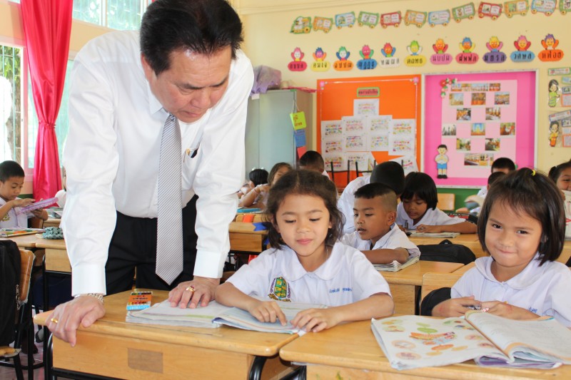 วันที่ 15 กุมภาพันธ์ 2560 เวลา 13.00 น. นายวิชัย พวงภาคีศิริ ผู้อำนวยการสำนักงานเขตพื้นที่การศึกษาประถมศึกษาชลบุรี เขต 3 ลงพื้นที่ตรวจเยี่ยม โรงเรียนบ้านระเวิง โรงเรียนบ้านพันเสด็จนอก เพื่อติดตามเรื่องการอ่านออกเขียนได้ของนักเรียนชั้นประถมศึกษาปีที่ 1 และให้กำลังใจผู้บริหารโรงเรียน ครู และนักเรียน (ภาพ : พรเทพ ศรีชาติ) (ข่าว : ปิ่นเพชร แช่มช้อย)