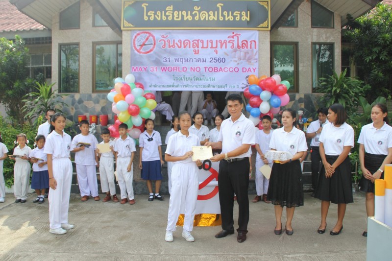 โรงเรียนวัดมโนรม จัดกิจกรรมวันงดสูบบุหรี่โลก