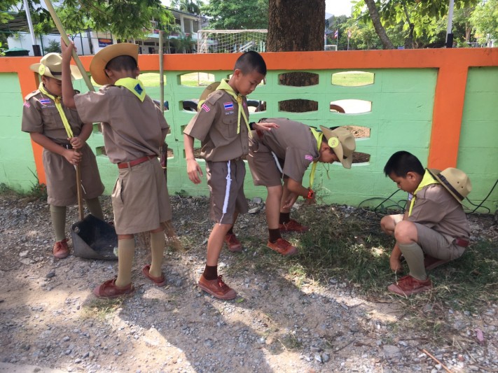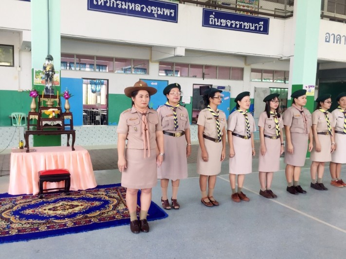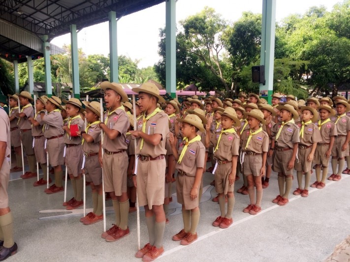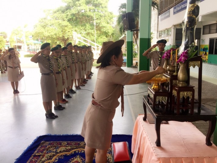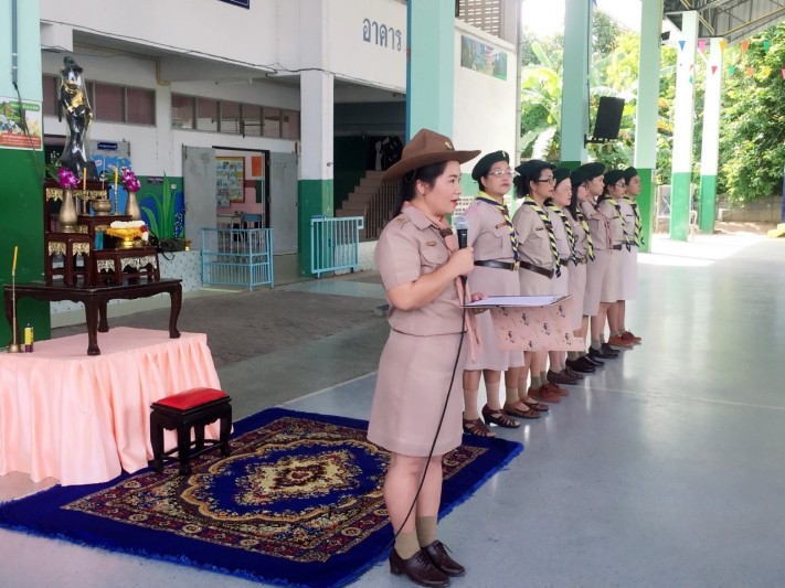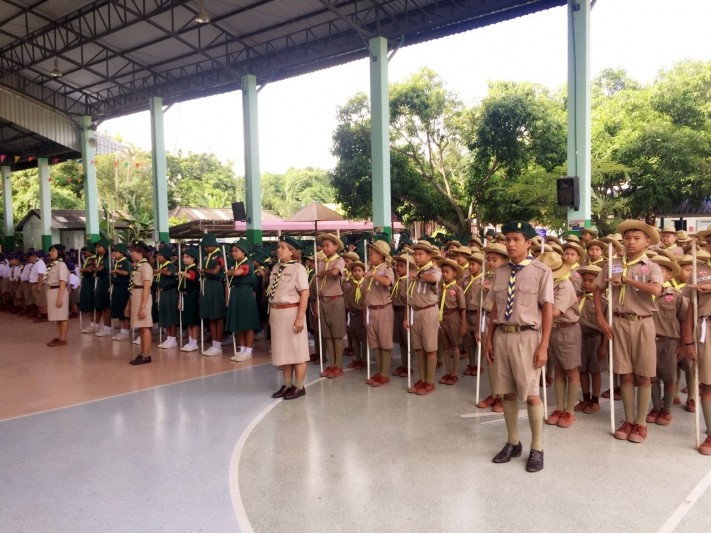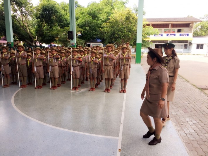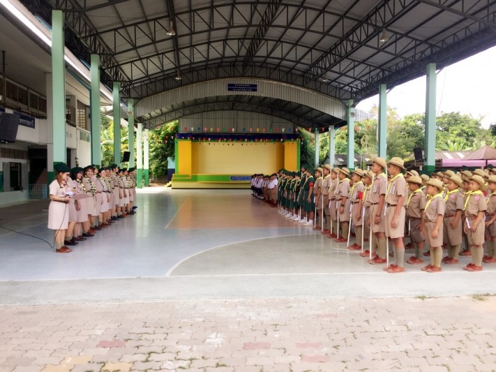 พิธีทบทวนคำปฏิญาณตนและสวนสนาม เนื่องในวันคล้ายวันสถาปนาคณะลูกเสือแห่ ปีการศึกษา 2560 โรงเรียนวัดหนองจับเต่า