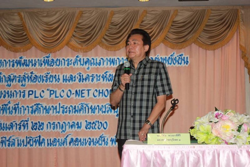 วันที่ 22 กรกฎาคม 2560 เวลา 09.00 น. นายวิชัย พวงภาคีศิริ ผู้อำนวยการสำนักงานเขตพื้นที่การศึกษาประถมศึกษาชลบุรี เขต 3 เป็นประธานเปิดการประชุมเชิงปฏิบัติการการนำหลักสูตรสู่ห้องเรียน และการวิเคราะห์ผล O-NET ด้วยกระบวนการ PLC (PLC O-NET Chon 3) ณ โรงแรมเฟิรส์แปซิฟิก แอนด์คอนเวนชั่น พัทยา  การประชุมครั้งนี้เพื่อพัฒนาการบริหารจัดการหลักสูตรของสถานศึกษาให้มีประสิทธิภาพ รวมถึงยกระดับคุณภาพการศึกษาโรงเรียนที่มีผลทดสอบระดับชาติขั้นพื้นฐาน (O –NET) ที่ต้องพัฒนา และพัฒนาครูให้มีความรู้ ความเข้าใจ นำกระบวนการ( PLC) ไปปรับใช้กับการจัดการเรียนการสอนเพื่อยกระดับผลสัมฤทธิ์ให้มีประสิทธิภาพ   ผู้เข้าประชุมประกอบด้วย ครูวิชาการ, ครูผู้สอนกลุ่มสาระการเรียนรู้ภาษาอังกฤษ,  ครูผู้สอนกลุ่มสาระการเรียนรู้วิทยาศาสตร์  โดยมีครูผู้สอนที่มีผลการทดสอบระดับชาติขั้นพื้นฐาน (O –NET) สูงกว่าระดับประเทศ  รองผู้อำนวยการสำนักงานเขตพื้นที่การศึกษาประถมศึกษาชลบุรี เขต 3 คณะศึกษานิเทศก์  เป็นวิทยากร (ภาพ : พรเทพ ศรีชาติ) (ปิ่นเพชร แช่มช้อย : ข่าว)
