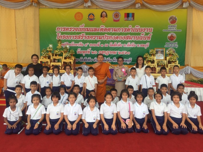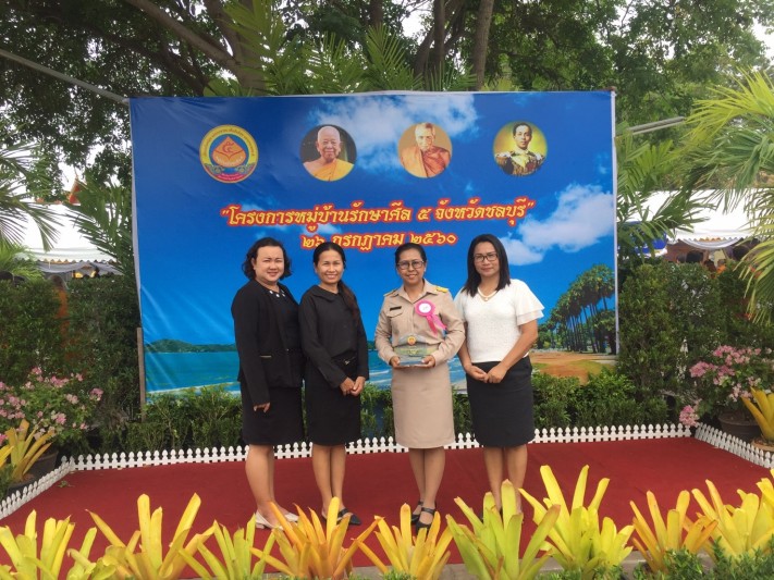 นางชุติกาญจน์ ทองเพิ่ม ผู้อำนวยการโรงเรียนบ้านอำเภอ เข้ารับโล่ประกาศเกียรติคุณ ผู้ให้การสนับสนุน "โครงการหมู่บ้านรักษาศีล ๕" คณะครูและนักเรียนเข้าร่วมกิจกรรม วันที่ ๒๖ กรกฎาคม ๒๕๖๐ ณ วัดสัตหีบ(หลวงพ่ออี๋)