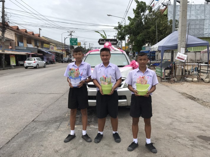 อุปกรณ์การเรียน โดยได้รับเงินบริจาคจากผู้ใจบุญ