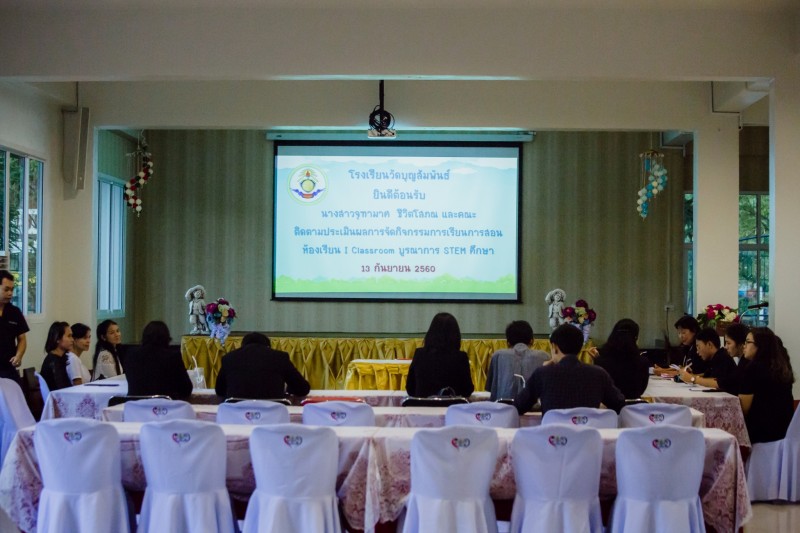 วันที่ 13 กันยายน 2560 ต้อนรับนางสาวจุฑามาศ ชีวิตโสภณ ผู้เชี่ยวชาญ สพฐ.ด้านการพัฒนาหลักสูตรและสื่อการเรียนรู้ด้านเทคโนโลยี และคณะ  เข้ารับการประเมินผลการจัดกิจกรรมการเรียนการสอนห้องเรียน I Classroom บูรณาการ STEM ศึกษาเพื่อประเมินผลการจัดการเรียนรู้ของครู และการใช้สื่อเทคโนโลยีในการเรียนรู้ของนักเรียนโดยมีการบูรณาการการสอนแบบ STEM ศึกษา ตามโครงการขยายผลการพัฒนาต้นแบบหลักสูตรการเรียนการสอนผ่านระบบเครือข่ายอินเทอร์เน็ต ตามหลักสูตรแกนกลาง สพฐ. I-Classroom ณ โรงเรียนวัดบุญสัมพันธ์