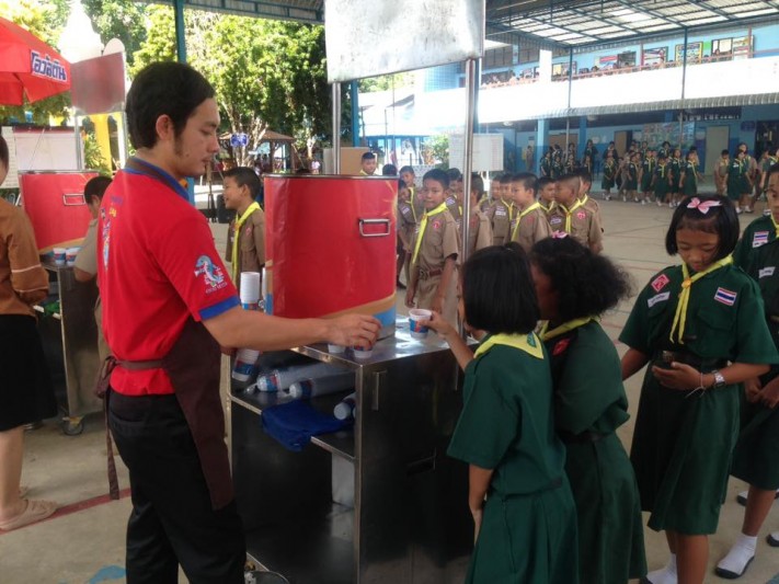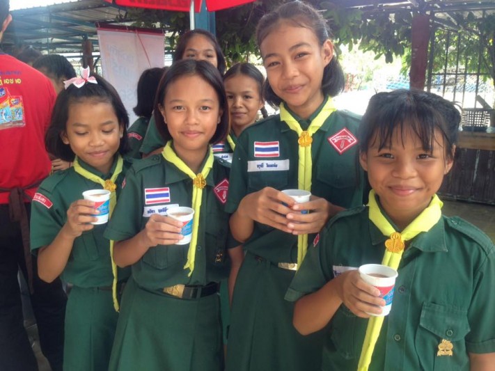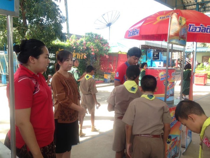 บริษัท เอบี ฟู้ด แอนด์ เบฟเวอร์เรจส์ นำเครื่องดื่มมอลต์สกัดรสช็อกโกแลต(โอวัลติน) มาแจกนักเรียนโรงเรียนบ้านทุ่งคาจำนวน 918 คน