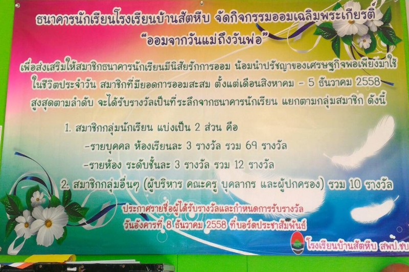ธนาคารนักเรียนโรงเรียนบ้านสัตหีบ จัดกิจกรรม ออมจากวันแม่ถึงวันพ่อ